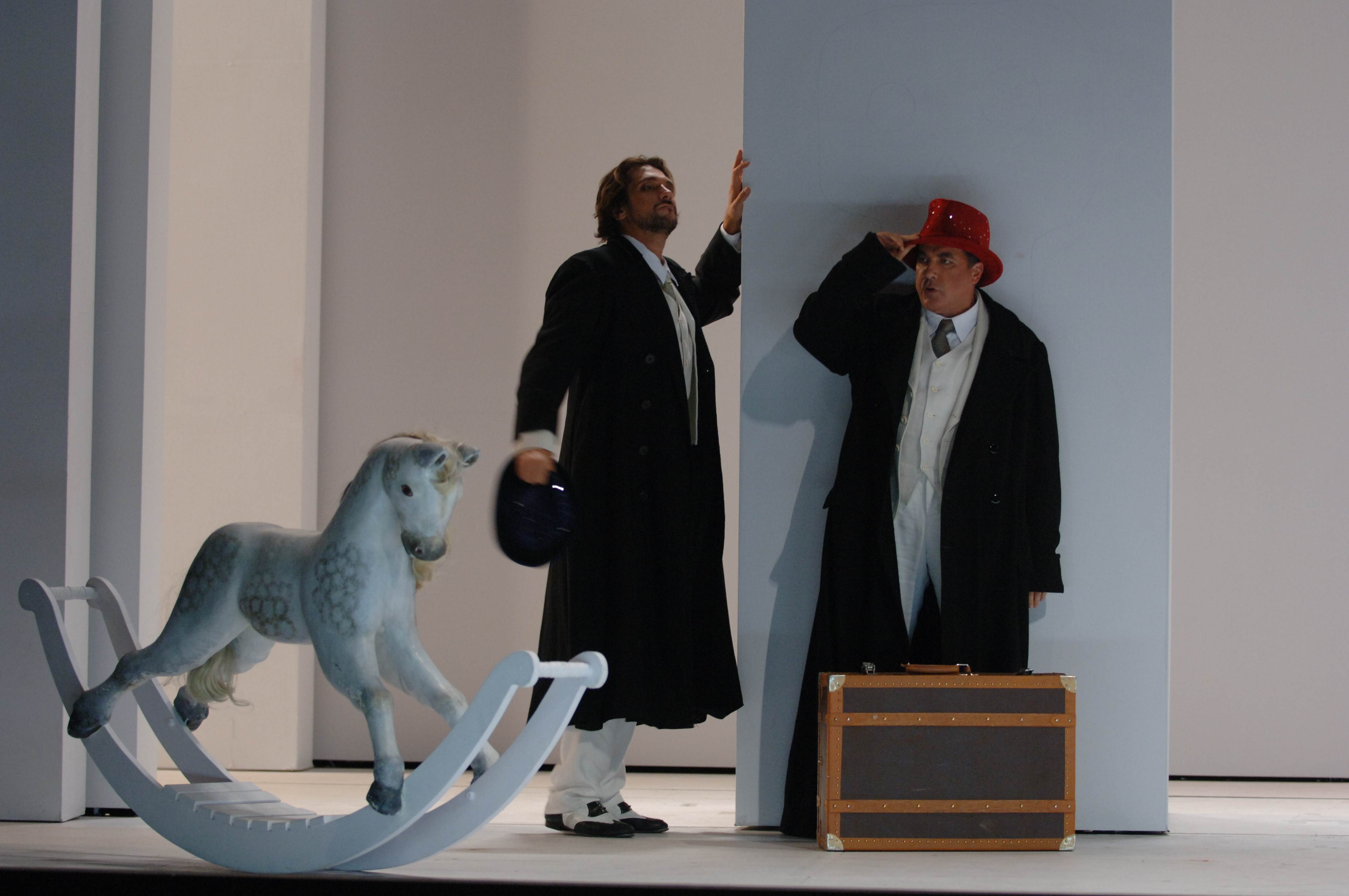 导演将他的“唐璜”设置在一个动荡的年代:20世纪20年代,意大利和法西斯主义的兴起。舞台上出现的刀、左轮手枪可以反映这一点。这里有谋杀、有不公正。但即使在这样的背景下,唐璜仍然可以置身于权威之上,只听命于自己。他为自己所失去的而奔逃,逐渐走向恶梦的尽头。这种逃跑可以说是自杀式的,唐璜所做的一切就是这个目的:他无视死亡,而是为之着迷,就像一个玩火的顽童,直至引火烧身。他反对传统惯例,蔑视社会法规。他无所畏惧,不在乎他人的目光,这就是他的所为,正因为如此,他成为了一个传奇。